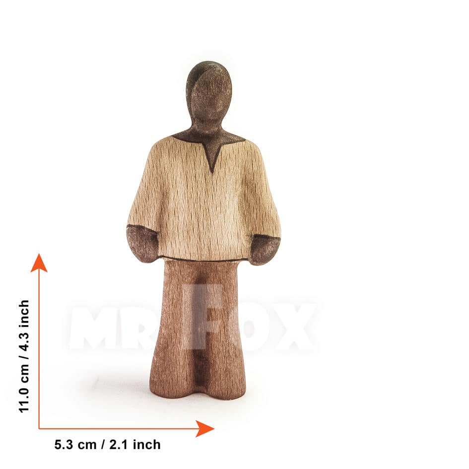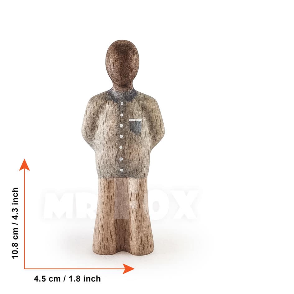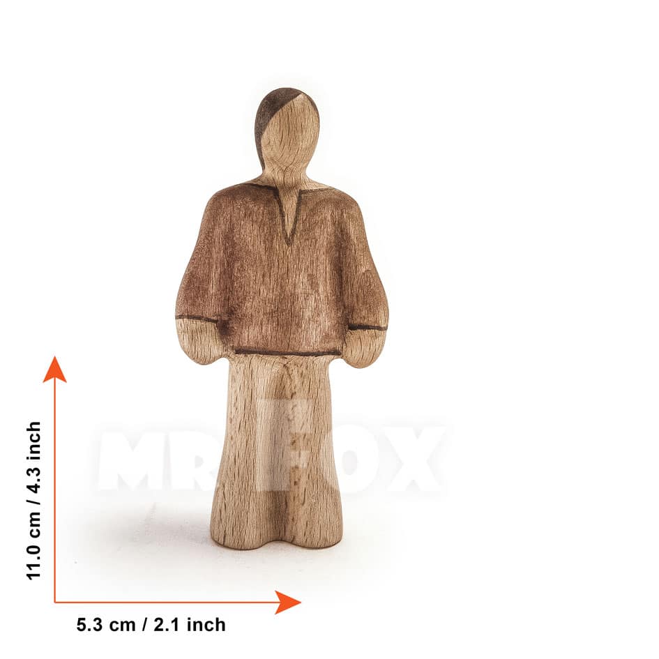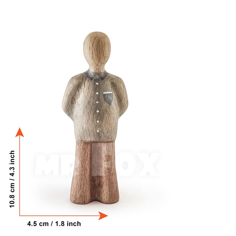 All figures are carved from solid beech wood, painted with water-based paint, and finished with natural linseed oil. CE certified for children aged 3 and above, made in Bulgaria.
